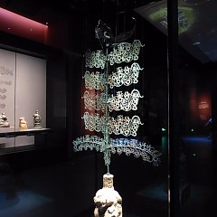 四川博物院新馆毗邻杜甫草堂,占地88余亩,拥有展厅14个,分布在3个楼层中,展示面积12000平方米,馆藏文物超过26万件,具有浓郁的巴蜀地方色彩。