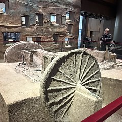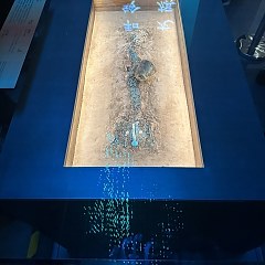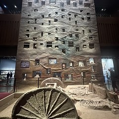 博物馆共有四层展厅,一层专门展出河南安阳殷墟遗址出土的2辆马车,这是我国目前发现最早的马车,距今已有3000多年。展厅地面特别设计一条「历史大道」,以时间轴的形式回顾中华文明起源发展的脉络和重大事件,侧面的「文物墙」则再现了田野考古发掘中的地层剖面。