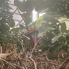 热带雨林区是馆内最大的展区,面积2600平方米,常年保持25-28°C气温,并用灯光模拟昼夜和季节差异。植物以无花果树和棕榈树为主,代表性动物有森蚺、凯门鳄、食人鲳、毒箭蛙、水豚、蝙蝠、鹦鹉、红眼树蛙等。