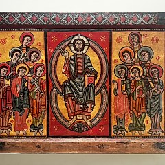 罗马风格艺术(Romanesque art):展品按照不同的年代和风格陈列,主要是11至13世纪比利牛斯山地区乡村教堂的壁画,重要展品为圣克里蒙特教堂的半圆壁龛画(Apse of Sant Climent de Taüll),其他展品包括木板画、金属器、木雕石刻等。