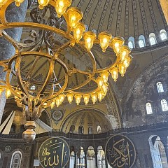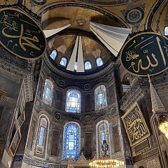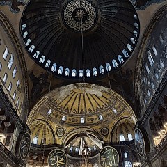 圣索菲亚大教堂(Hagia Sophia)建成于537年,外观呈拜占庭建筑风格,它曾先后被用作东正教、天主教和伊斯兰教的礼拜场所,主要展品为建筑本身及教堂内的镶嵌画与装饰艺术,包括「圣母子像」、「三圣像」等。