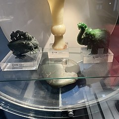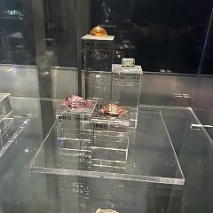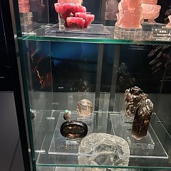 此外,中国地质博物馆还拥有世界最大的「水晶王」、巨型萤石方解石晶簇标本、蓝铜矿、辰砂、雄黄、雌黄、白钨矿、辉锑矿等矿物标本,以及宝石、玉石等国宝级珍品。