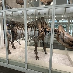 一层:展出地质学、古生物学、史前学和人种学藏品,包括古哺乳动物化石700余件、岩石矿物标本3200余件、古人类相关标本293件。另在开放式库房中设有「中国古哺乳研究之开端」展览,介绍北疆博物院馆史,展出70余张照片及100余件实物。