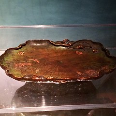 重点藏品包括:商代兽面纹铜鬲、西周云纹铜五柱器、春秋青铜龙虎大建鼓座、战国楚大鼎、吴王光鉴、鄂君启金节、宋代景德镇窑青白釉注子温碗、镶金边玛瑙碗、元代「张成造」剔犀云纹漆盒等。