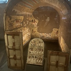 馆内共设有两个重要墓葬展区,「Kha 与 Merit 贵族墓葬」展区位于2层,展出 Kha 与 Merit 的棺椁、大量珠宝陪葬品,以及现存最古老版本的墓葬文书《死者之书》等。