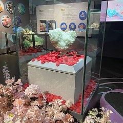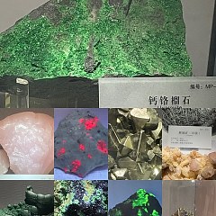 矿物宝石厅:展示博物馆收藏的超过300种国内外矿物晶体标本,设有国内规模领先的荧光矿物室,在特殊光源照射下使矿物呈现五彩斑斓的色彩。