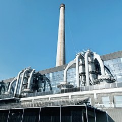博物馆的标志性建筑为一座高达165米的大烟囱,世博会期间,烟囱被改造成全球最高的气象信号塔,塔身的红色刻度实时显示着园区的温度。