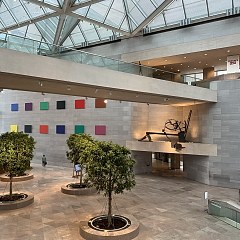 东边建筑由贝聿铭设计,外观呈H形,1978年开放,主要收藏现代艺术作品,两栋建筑靠地下长廊联接。