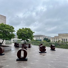 华盛顿国家美术馆由美国国会创建于1937年,最初藏品为银行家 Andrew William Mellon 和企业家 Samuel Henry Kress 两人的收藏。1941年3月17日,国家美术馆正式对外开放。1978年,国家美术馆在东边新建了一座专门收藏现代艺术的展馆。1999年,又邀请景观设计师 Laurie D. Olin 担任设计,在博物馆西边增建了一座6英亩大小的雕塑公园。