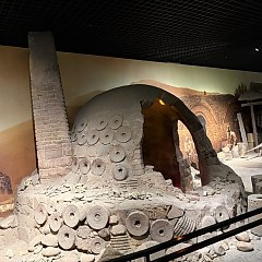 磁州窑博物馆整体造型为典型的馒头窑形状,外墙参考磁州窑的匣钵装饰。展馆共有2层4个展厅,展示面积2524平方米。
