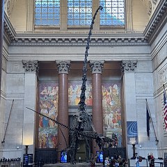 化石馆:这是整个纽约市最受欢迎的旅游目的地之一,6个展厅共陈列超过1000件化石标本与复原模型,从5亿年前的原始脊椎动物、数千万年前的恐龙,再到1万年前灭绝的大地懒,还原神秘而壮观的古生物世界。最特别的展品是一件长达37米的巴塔哥尼亚巨龙化石模型。