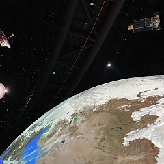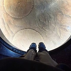 「征程」展区位于2楼,全景式展现人类探索宇宙奥秘的漫漫征途,更多地依托科学故事和对未来的畅想,激发参观者对科学探索方法和精神的了解,以及更深层次的文化思考。该展区设置两组「VR月球漫步」体验装置,参观者可以从宇航员的视角观察月球地表环境,模拟月球漫步的真实感受。