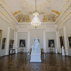 米哈伊洛夫斯基宫的基本陈列分为2个部分,第一部分为艺术史,以时间为序回顾俄罗斯艺术从12世纪到19世纪下半叶的发展历程,亮点包括圣像画「大天使加百列」,油画《叶卡捷琳娜大帝在公园》《庞贝末日》,俄罗斯帝国时期的雕塑与装饰艺术作品等。