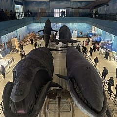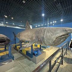 海洋哺乳动物展厅(右图)以海兽奥秘为主题,展出虎鲸、白暨豚、儒艮等标本,参观者还可以在现场听到鲸声,并观看演示鲸回声的定位装置;巨鲸展厅集中展示馆藏巨鲸及骨骼标本,展览亮点包括重66.7吨的黑露脊鲸、重52吨的「潜水冠军」抹香鲸、重34.7吨的长须鲸。
