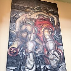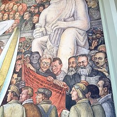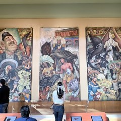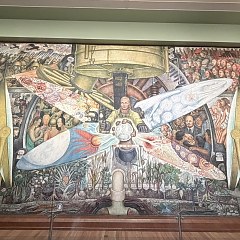 三层的西侧为 Diego Rivera 的《十字路口的人》;北侧为 David Alfaro Siqueiros 的《新民主》三部曲和 Diego Rivera 的《墨西哥生活的狂欢》四部曲;东侧为 José Clemente Orozco 的《宣泄》。