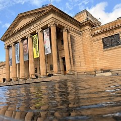 新南威尔士州美术馆临近著名的悉尼歌剧院,其古典主义建筑是悉尼市的重要地标,旧馆始建于1890年代后期,由英国建筑师 Walter Vernon 设计。