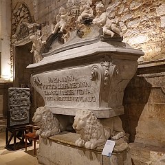 馆内最重要的藏品是葡萄牙国王斐迪南一世(Ferdinand I,1345-1383)的哥特式石棺,这具石棺原本存放在圣塔伦市的一座修道院,半岛战争时期被法国入侵者破坏,国王的遗骨也下落不明,1875年石棺的残存部分被运至博物馆。
