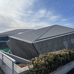 下方灰色建筑为博物馆,远景为遗址区
