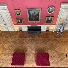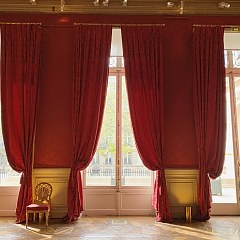 - 音乐厅:这个房间拥有红色墙壁和深色家具,呈现典型的法兰西第二帝国风格,天花板装饰阿波罗主题壁画。