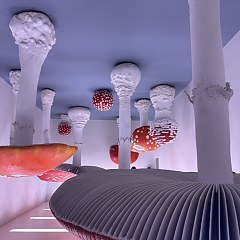 威尼斯馆:位于威尼斯大运河(Canal Grande)河畔的科尔纳罗女王宫殿,这座宫殿始建于1724年,最初是 Corner 贵族家庭的住宅,20世纪末曾作为威尼斯双年展的当代艺术历史档案馆。普拉达中心2011年开始对宫殿进行修复,目前1、2层已修复完毕用于举办临展。