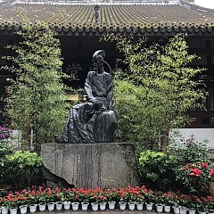 大廨:中轴线上的第二重建筑,体现了敞厅式建筑风格。「廨」是官署的意思,也就是古代地方官吏办公的场所。大廨为清嘉庆十六年修建草堂时营建,厅中陈列雕塑家钱绍武创作的杜甫雕像。