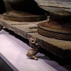 陈列于楚文化馆,集中展示了湖北地区出土的楚文物精华,展品有越王勾践剑、吴王夫差矛,还有复原的2002年在湖北枣阳九连墩发掘的楚国车马坑中的部分车马。