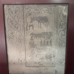 「汉画像石和宋金墓葬砖雕展」 陈列在「灵宝洞」展厅及2层展厅,共展出53件文物,以山西出土的东汉左表墓室画像石为主。这些画像石题材广泛,包括历史故事、古代神话,以及表现墓主身份地位和日常生活的内容等。