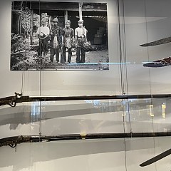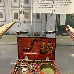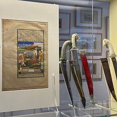 印度、中国和马来展厅则分别展示了从这些国家收集的伊斯兰主题藏品,例如印度镶钻珐琅金项链、以阿拉伯语作为纹饰的毛笔缸、19世纪金顶银身槟榔盒、一把印度尼西亚「克里斯」匕首等。