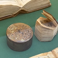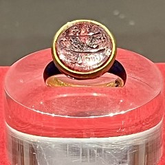 「钱币与印章」展厅通过展示伊斯兰世界的货币流通,回顾王朝的更迭。重要展品有公元7世纪末的倭马亚王朝「第纳尔金币」(Gold dinar)、14世纪的银色环形印章(Silver ring with seal)等。