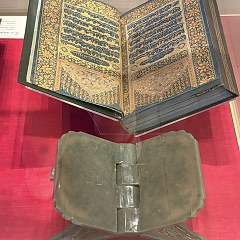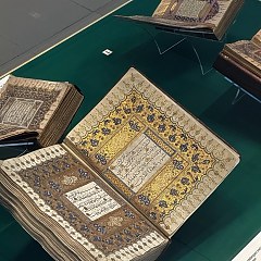 「古兰经与手稿」展厅是博物馆的核心展厅之一,重要展品包括公元9-10世纪的蓝底金字古兰经手稿、14世纪以阿拉伯语书写的占星书、18世纪的伊斯兰书法家文凭证明等。