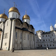 「教堂建筑群」圣母升天大教堂(Assumption Cathedral)是克林姆林宫的中央建筑物,1479年在伊凡大帝(Ivan the Great)的命令下建成,六个世纪以来一直是俄罗斯的国家主教堂,用于举办俄罗斯历代君主的加冕仪式以及东正教宗主教、牧首和都主教的任命仪式。十月革命后,大教堂被改为博物馆,主要藏品包括壁画、圣像和各类宗教器物,还设有历代主教的圣墓。