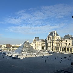 1989年,美籍华人建筑师贝聿铭设计的玻璃金字塔建成,现为卢浮宫博物馆的主入口。