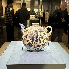 古代瓷器艺术精品展,位于方形展厅四层E2厅:展出了北京出土的瓷器170件,其中重要藏品如青花釉里红海水云龙纹天球瓶、青花凤首扁壶、明成化斗彩葡萄纹杯、洒蓝釉钵等。