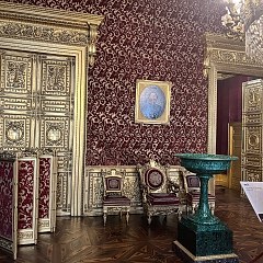 中国陈列室是1层最特别的展厅之一,房间墙面以中式黑底金花漆画为装饰,充满异国清情调。天顶画描绘了希腊神话中的神祇,以及特洛伊战争的部分故事情节。