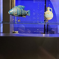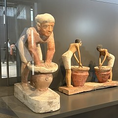 -展厅1-3:史前时期、前王朝时期、早王朝时期、古王国时期和第一中间时期的文物。重要展品包括绘有尼罗河景色的陶杯、书记官米特里(Mitri)雕像,以及古埃及第四王朝王后、法老胡夫母亲赫特菲里斯一世(Hetepheres I)陵墓中出土的文物。