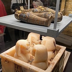 这一专题展区位于7号主展厅旁,展陈面积超过7000平方米,完整展出古埃及第十八王朝法老图坦卡蒙(Tutankhamun)陵墓出土的5398件随葬品。图坦卡蒙陵墓于1922年由英国考古学家 Howard Carter 发现,是唯一没有遭到盗掘且保存完好的古埃及法老墓,被誉为20世纪最重要的考古发现之一。