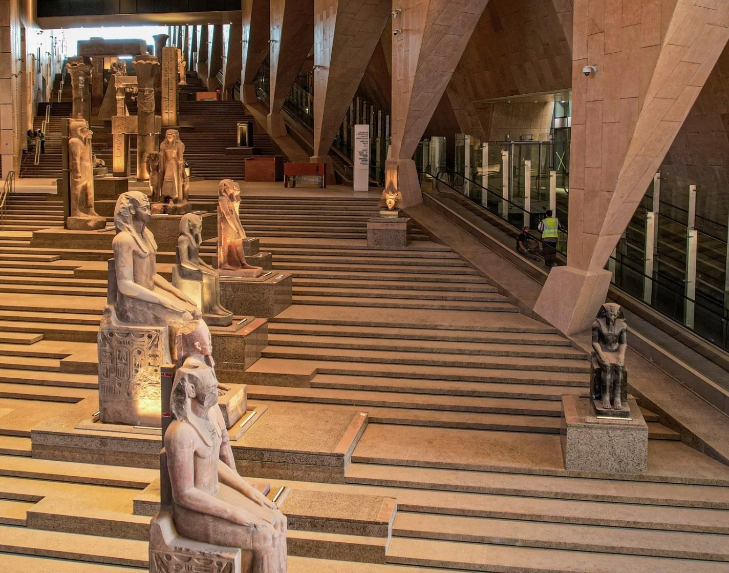大埃及博物馆(Grand Egyptian Museum)毗邻吉萨金字塔群,是全球规模最大的单一文明主题博物馆,2025年11月正式对外开放。这座博物馆占地面积达50万平方米,馆藏超过10万件古埃及文物,核心展品包括法老图坦卡蒙陵墓出土的所有5398件随葬品、胡夫船以及拉美西斯二世巨像等。