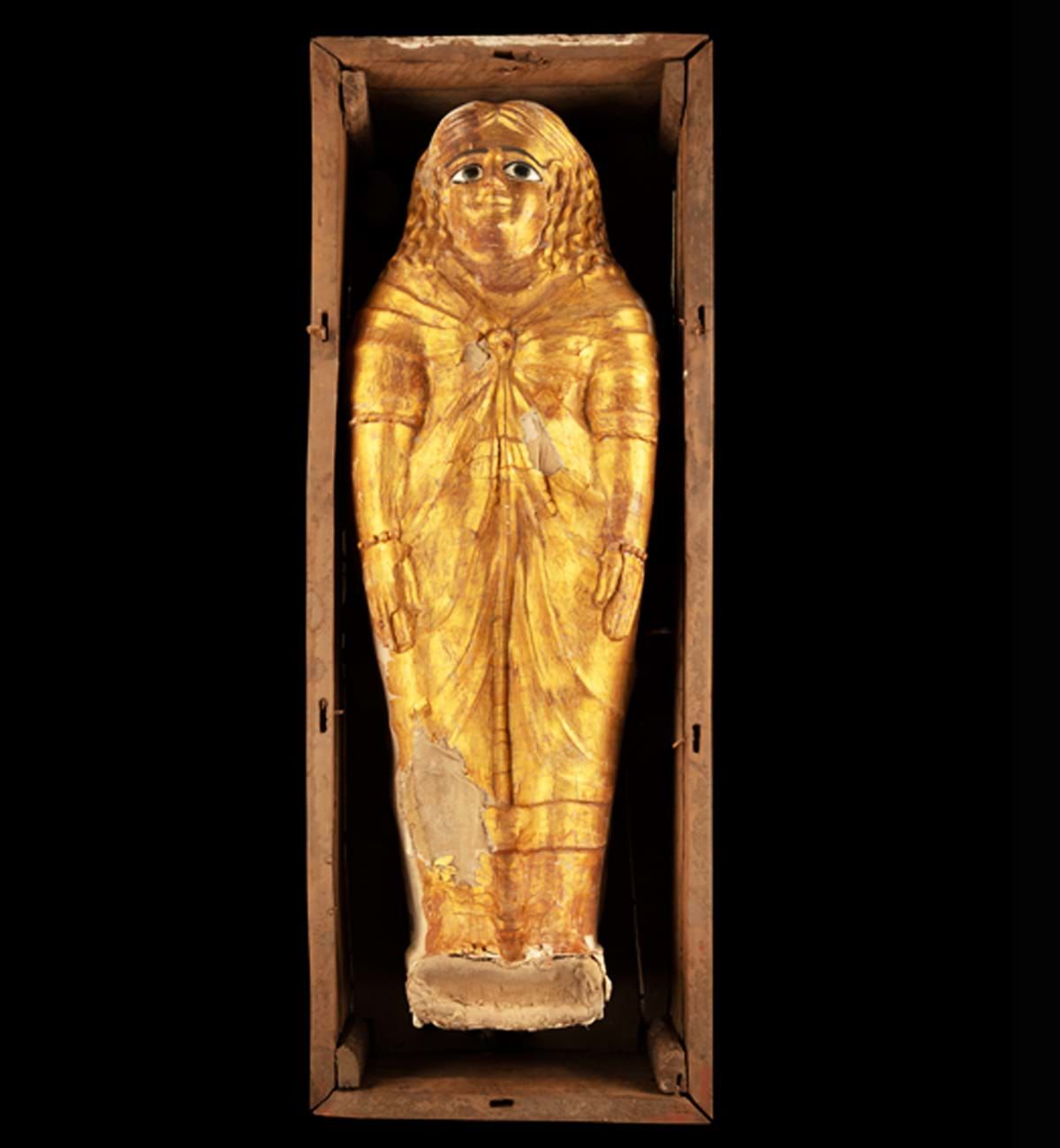 用镀金纸莎草布包裹的儿童木乃伊,希腊罗马化时期