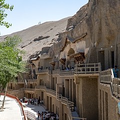 莫高窟俗称「千佛洞」,始建于十六国前秦时期(4世纪),据记载其开创者是一位法号为「乐僔」的和尚。南北朝时期莫高窟发展较快,至隋唐达到巅峰,元代后衰落荒废。