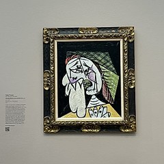 《拿手帕的哭泣女人》(Weeping Woman with Handkerchief),巴勃罗·毕加索,1937年,布面油画 © Estate of Pablo Picasso