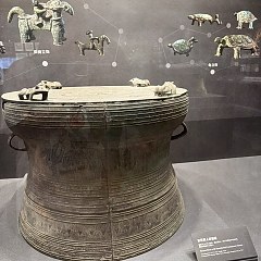 「穿越时空的鼓声:铜鼓文化展」是该馆最具特色的展厅,共陈列逾60面铜鼓,全面介绍铜鼓的历史、类型、分布、演变、铸造、纹样及传承。铜鼓是一种青铜礼乐器,既是统治权力的象征,也可作为祭祀和娱乐用具,主要流行于中国广西、云南、贵州等地区以及东南亚诸国。