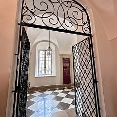 华沙皇家城堡坐落于城堡广场,是一座巴洛克风格的红砖建筑,因历尽波折跌宕的国家历史,亦被称为「波兰民族历史与文化的纪念碑」。城堡展区共有3层,一层为绘画、雕塑与装饰艺术展厅和皇家图书馆,主要展示波兰最后一任君主 Stanisław Augustus 的收藏,最重要的展品为伦勃朗在1641年完成的两幅画作《画框里的女孩》和《写字台前的学者》(右图)。
