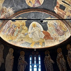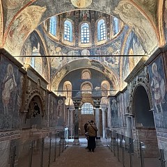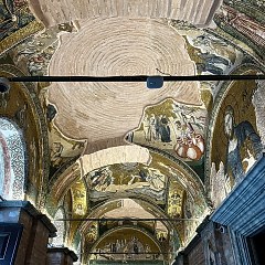 科拉教堂(Chora Church)始建于公元5世纪,外观为拜占庭建筑风格。教堂以东正教镶嵌画和壁画艺术闻名,主要内容为圣母玛利亚、耶稣基督及其他圣经人物的生平故事,重要作品包括「圣母之死」「耶稣复活」等。