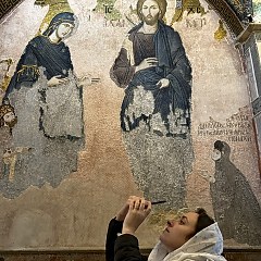 科拉教堂位于古代君士坦丁堡的郊区,「Chora」在希腊语中意为「乡下」。建筑占地面积约742.5平方米,外观呈拜占庭风格,教堂内装饰14世纪东正教镶嵌画和壁画,因保存较完好而十分少见。
