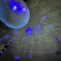 东翼地下的宇宙展览厅以由近及远的方式展示宇宙概念,让观众置身在神秘幽暗的仿真太空环境内,设有月球弹跳机、宇宙演化剧场、重力冲浪等互动展项。