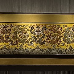 地下一层是「云锦天衣」、「红楼梦曲」展厅和2个临时展厅。「云锦天衣」展厅主要展出皇家云锦织物,其中一件元代织金大袖袍服是目前已知最早运用云锦织金工艺的实物。其他重要展品还包括一件清代「明黄色缎绣万字地平金绣金龙十二章纹龙袍」和一件杏黄色织金妆花绒缠枝莲纹夹服等。