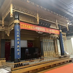该戏厅是昆博昆曲展演的主要场所,内部复原了明式厅堂结构,并在戏台两侧陈列了昆曲服饰(包括服装、盔帽、髯口、面具、脸谱)等道具。