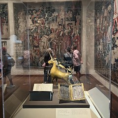 其他重要展品包括雕刻于12世纪英国的象牙十字、创作于14世纪的《让娜·德甫勒时祷书》(Hours of Jeanne d’Evreux)、晚期哥特时期「英雄」挂毯(Nine Heroes Tapestries)等。