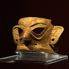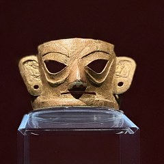 位于一层西厅,陈列了以「太阳神鸟」金饰为主的30余件金沙遗址出土精华文物。馆中的「金面具」是目前国内年代最早、保存最完整、体量最大的黄金面具。