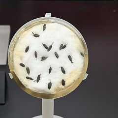 第二展厅「稻作经济」呈现稻作农业和渔猎采集活动,展出实物包括人工栽培稻谷,骨耜、木杵和石磨盘、石球等农业耕作与加工工具,骨哨、骨箭头、弹丸等渔猎工具,以及酸枣、橡子、芡实、菱角等果实遗存;